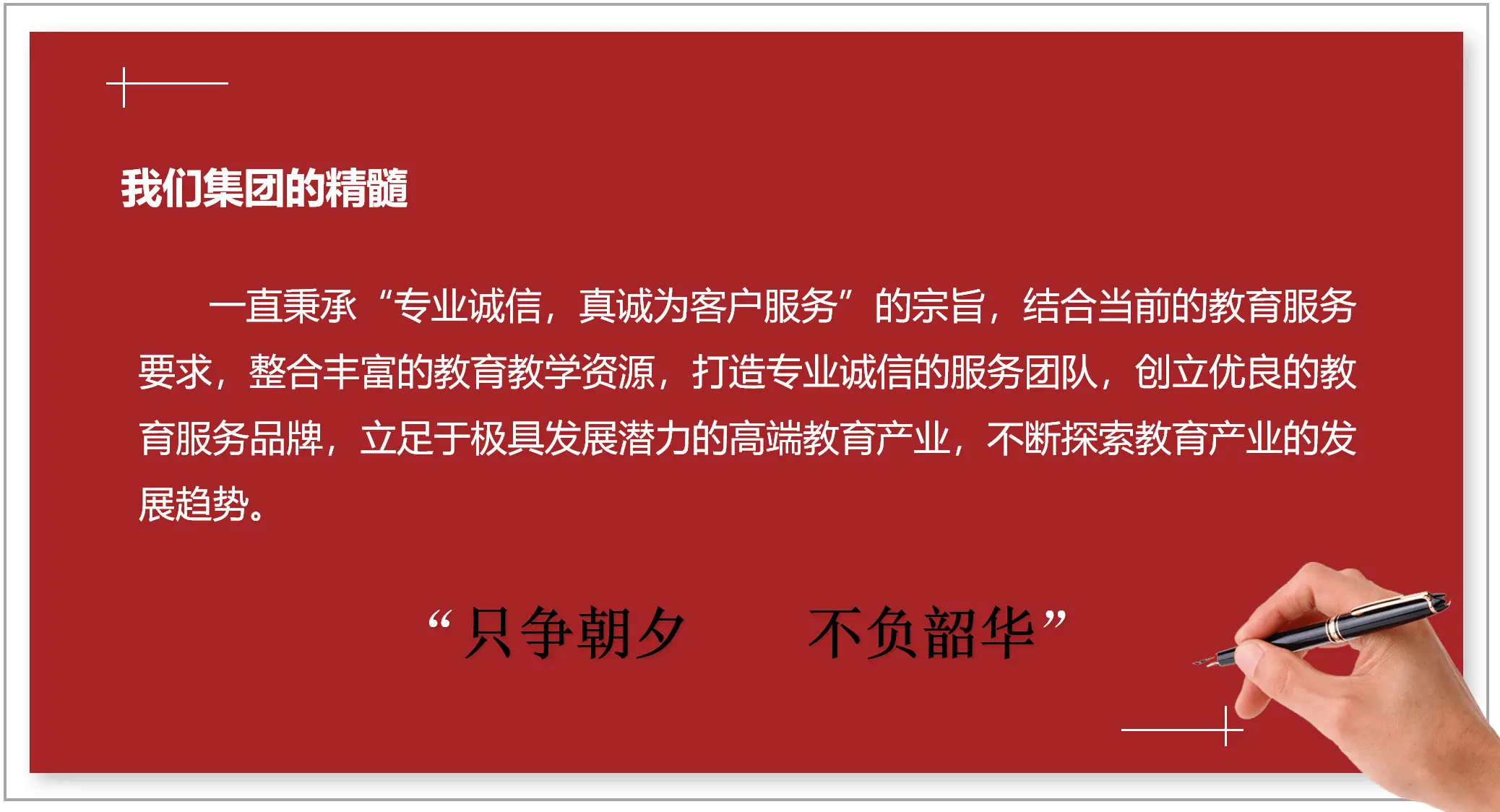 千帆匯海闊,風(fēng)好正揚(yáng)帆。站在新的歷史起點(diǎn)上,教投集團(tuán)將以習(xí)近平新時代中國特色社會主義思想為指引,堅持立德樹人根本任務(wù),以服務(wù)國家為最高追求,以多種經(jīng)營為發(fā)展根基,以深化改革為強(qiáng)大動力,以加強(qiáng)黨的建設(shè)為堅強(qiáng)保證。秉持“只爭朝夕、不負(fù)韶華”的理念和“追求卓越”的作風(fēng),堅持“中西融會、古今貫通、品牌滲透”的經(jīng)營風(fēng)格和“攻堅克難、全面發(fā)展”的培養(yǎng)特色,弘揚(yáng)“愛國奉獻(xiàn)、追求卓越”傳統(tǒng)和“人文日新”精神,向著全省重點(diǎn)企業(yè)的前列奮勇邁進(jìn),為國家發(fā)展、人民幸福、人類文明進(jìn)步貢獻(xiàn)更大力量!