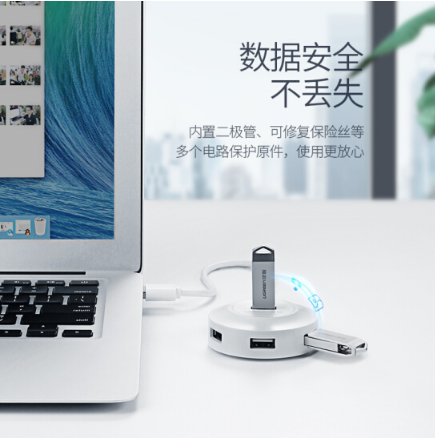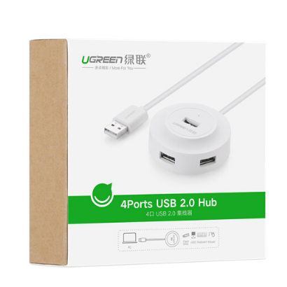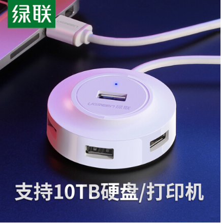 綠聯(lián)(UGREEN)USB分線器2.0 4口HUB集線器擴(kuò)展塢 筆記本電腦一拖四多接口轉(zhuǎn)換器延長線帶電源口 白1米 20270