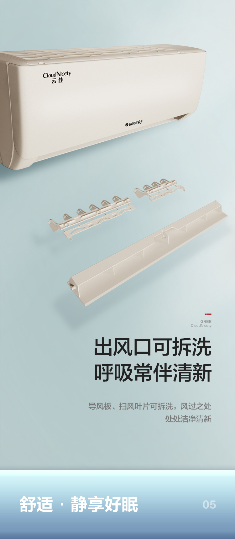 空調(diào)器導(dǎo)風(fēng)板分段不同送風(fēng)方向,滿足室內(nèi)每個人的個性化需求。