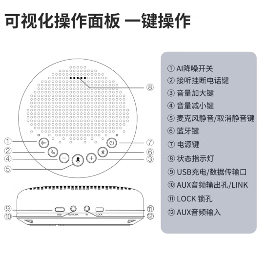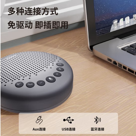 得力(deli)視頻會(huì)議全向麥克風(fēng)無(wú)線連接 (360度直徑6米拾音 適合10-40m2中小型會(huì)議室)拾音器桌面揚(yáng)聲器14870