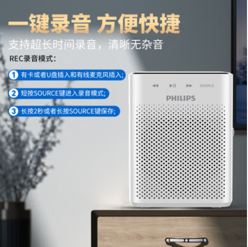 飛利浦PHILIPS 小蜜蜂擴(kuò)音器教師專用 插卡喇叭音箱 腰掛麥克風(fēng) 導(dǎo)游便攜式講解員 SBM210 長(zhǎng)續(xù)航版