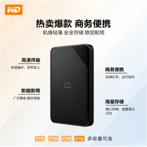 西部數(shù)據(jù)(WD) 5TB 移動硬盤 USB3.0 Elements SE 新元素系列2.5英寸 機(jī)械硬盤