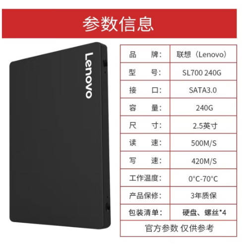 聯(lián)想(Lenovo) 240GB SSD固態(tài)硬盤 SATA3.0接口 SL700閃電鯊系列