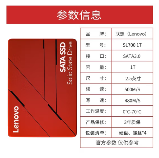 聯(lián)想(Lenovo) 1TB SSD固態(tài)硬盤SATA3.0接口 SL700系列(紅盤)