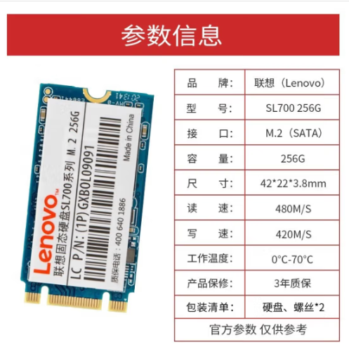 聯(lián)想(Lenovo) 256GB SSD固態(tài)硬盤 M.2接口(SATA總線) SL700固態(tài)寶系列 2242板型