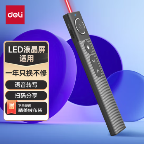 得力(deli)激光翻頁(yè)筆 教師PPT投影筆數(shù)碼光點(diǎn)激光筆 教鞭電子筆演講筆 語(yǔ)音轉(zhuǎn)寫無(wú)線演示翻頁(yè)器課件筆50685
