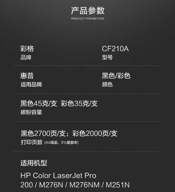 參數(shù) [品牌] 彩格 [型號] CF210A硒鼓四色套裝