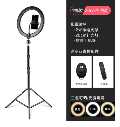 SueFer手機(jī)直播支架套裝主播自拍戶外錄視頻落地拍照三腳架抖音快手桌面懶人夾子平板美顏補(bǔ)光燈多功能 2.1米支架【1機(jī)位】26cm燈+藍(lán)牙遙控器