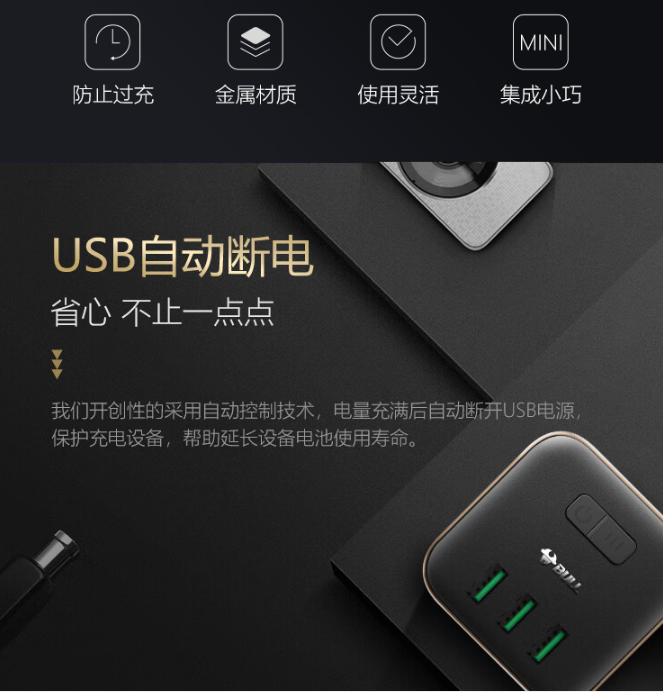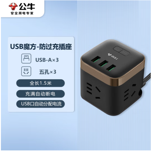 公牛(BULL) 尊享版魔方USB防過充插座 插線板/插排/接線板/拖線板 3USB+3孔全長1.5米 GNV-UU215T