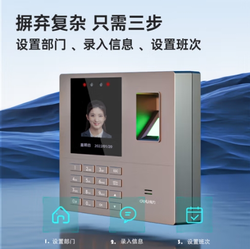 得力考勤機(jī) 打卡機(jī)人臉+指紋 打卡 免軟件免網(wǎng)絡(luò) 三步簡單設(shè)置 自動(dòng)生成報(bào)表 U盤導(dǎo)報(bào)表33800