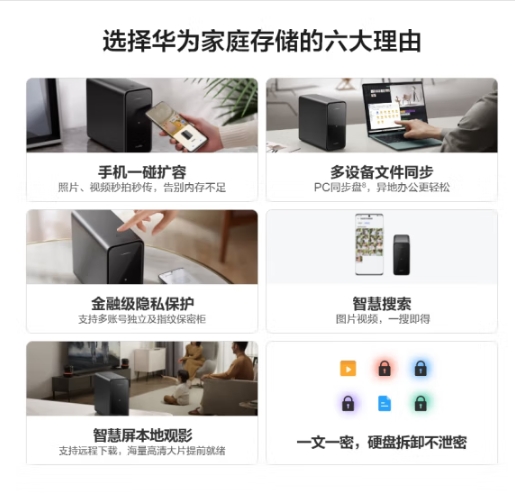 華為家庭存儲(chǔ)4TB手機(jī)一碰擴(kuò)容 雙盤位nas網(wǎng)絡(luò)存儲(chǔ)器相冊(cè)備份家用硬盤網(wǎng)盤私有云服務(wù)器
